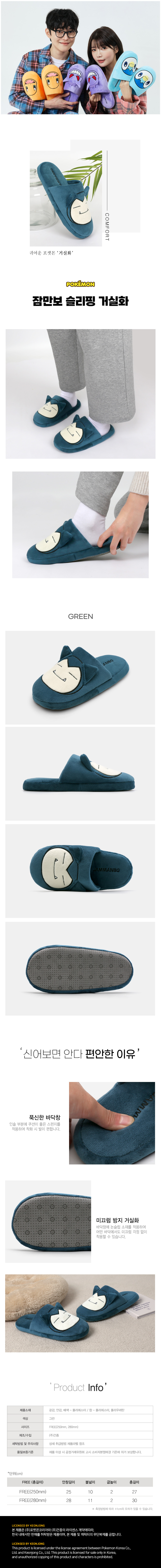 NASSAU BRAND SHOP 포켓몬스터 슬리핑 룸슈즈 | 잠만보 스타일컬러 : 146888-GREEN 33%