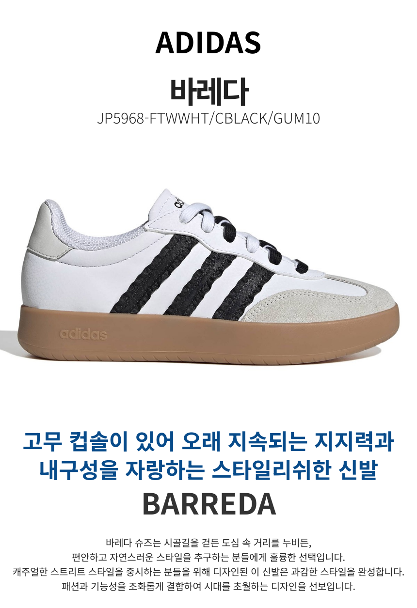 ADIDAS BRAND SHOP 바레다 스타일컬러 : JP5968-FTWWHT/CBLACK/GUM10 19%
