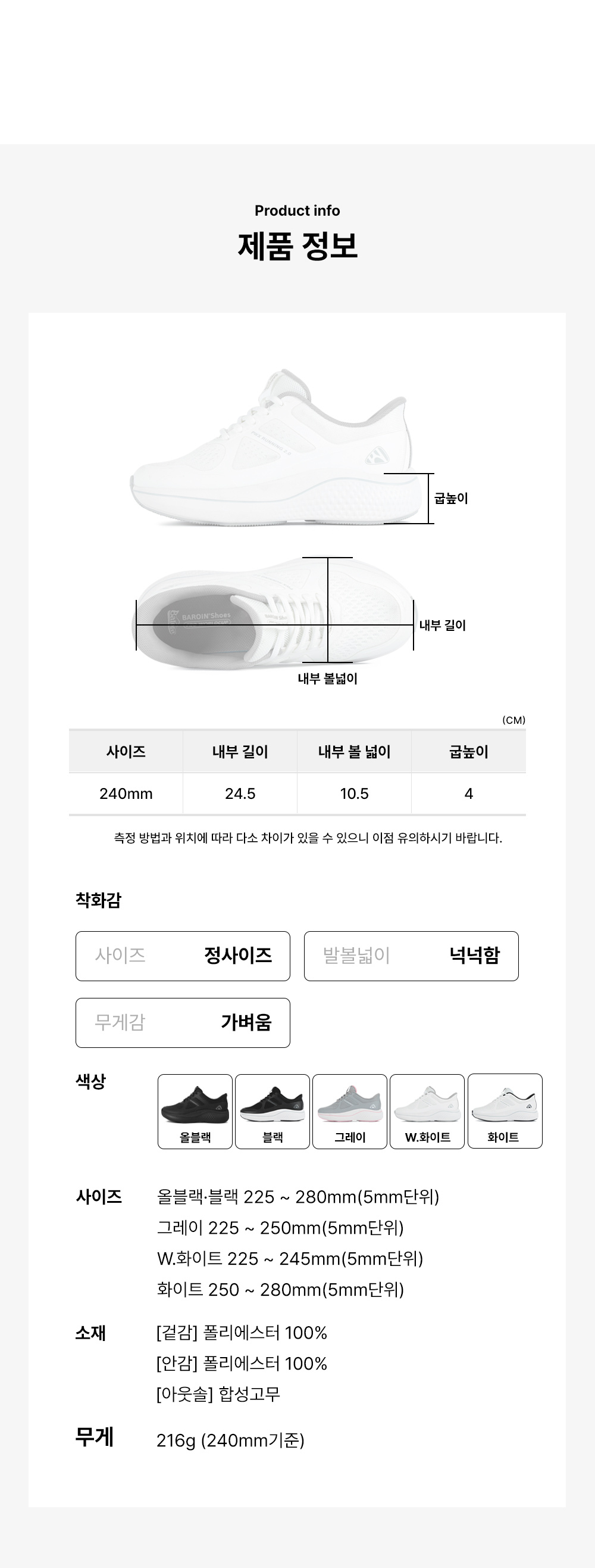 • 치수 상세페이지 표기