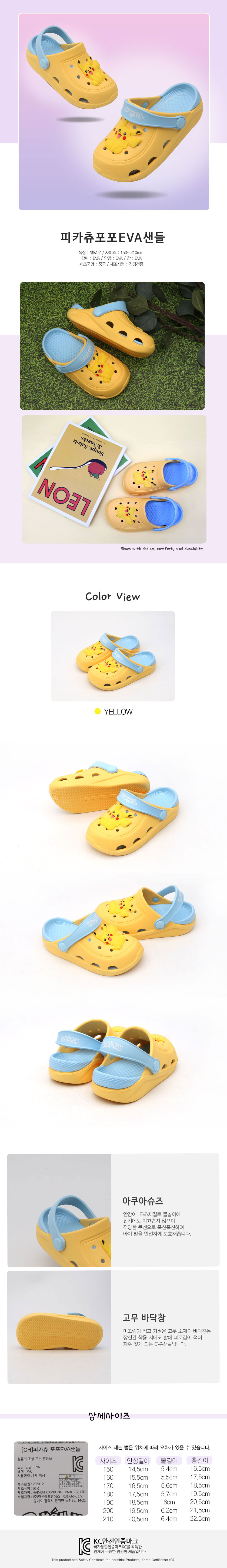 SHOELAMODE BRAND SHOP 포포 EVA 샌들 | 피카츄 스타일컬러 : 130004-YELLOW 28%