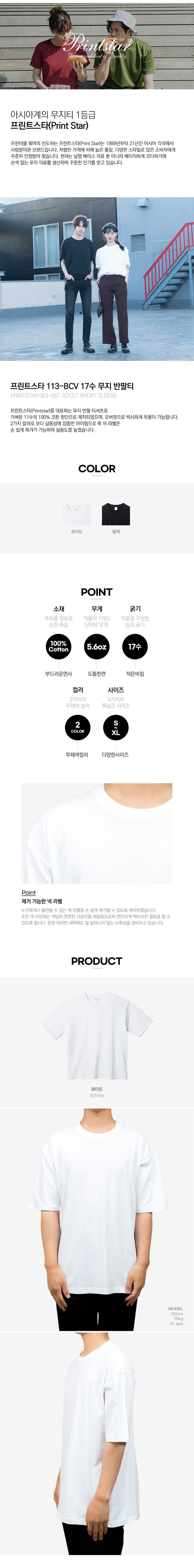 PRINTSTAR BRAND SHOP 오버핏 무지 반팔티 | 블랙 스타일컬러 : 113-BCV-Black 30%