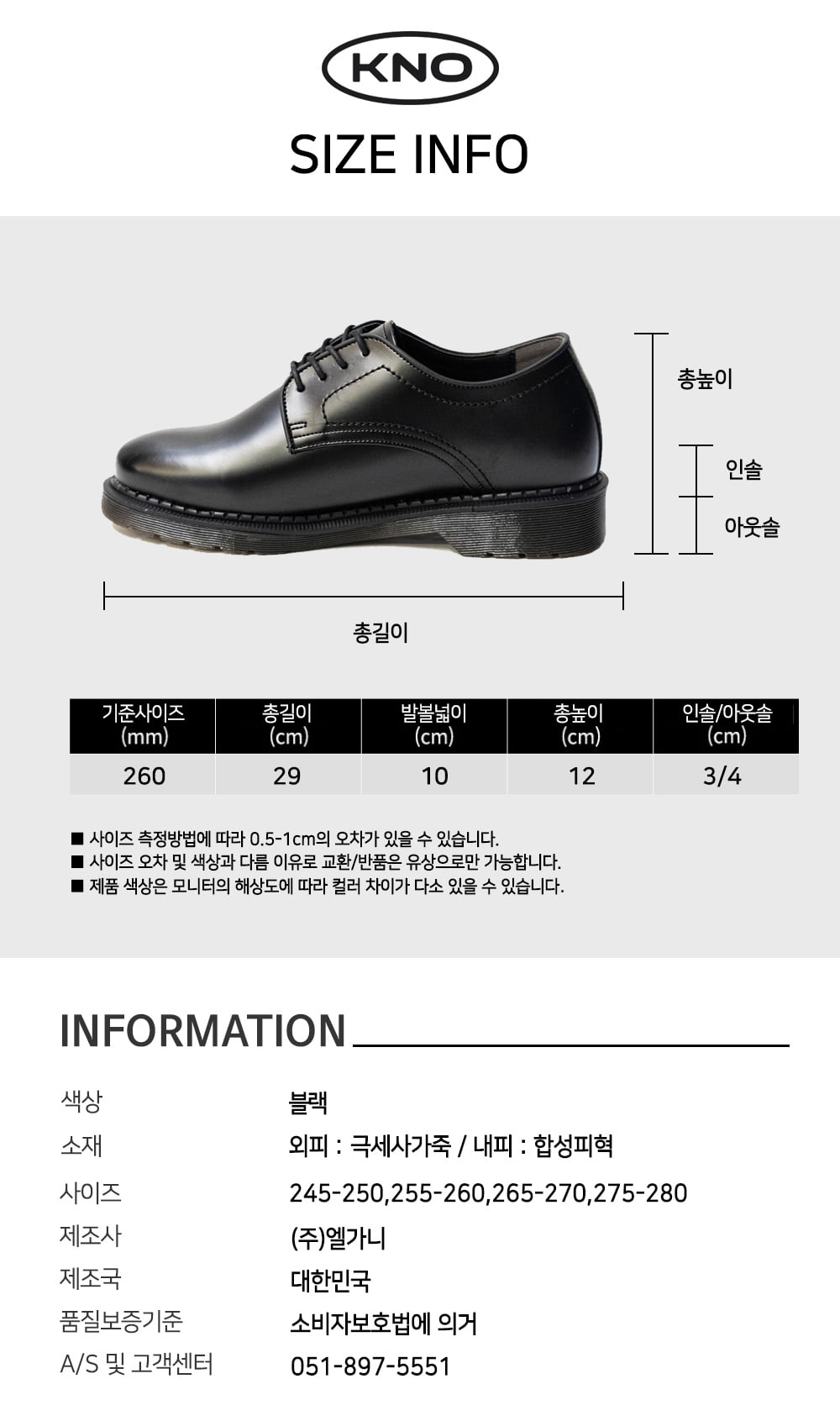 KINOI BRAND SHOP 토니 7cm 키높이 더비슈즈 스타일컬러 : k12345-12-black 44%
