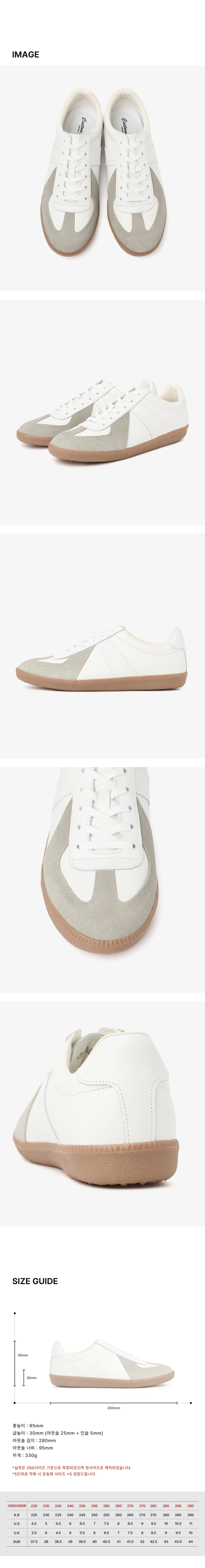 CUSTOM ADE BRAND SHOP 체이스 소가죽 독일군 스니커즈 3cm | CR0029GR 스타일컬러 : CR0012-IVORY 36%