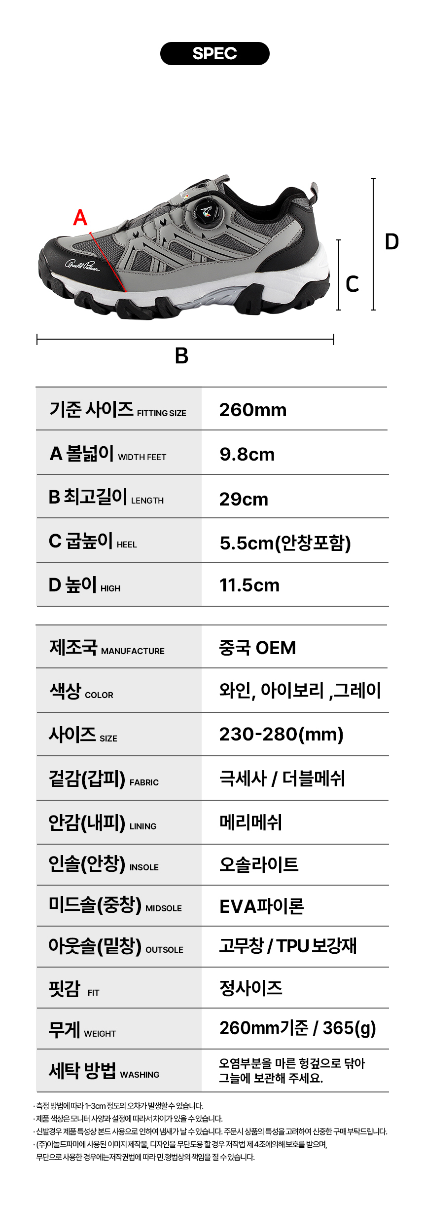 ARNOLD PALMER BRAND SHOP 아놀드파마 워킹트레일 유니섹스 미끄럼방지 경량 사계절 트레킹화 다이얼 등산화 | 레드 스타일컬러 : APWT01-RED 63%