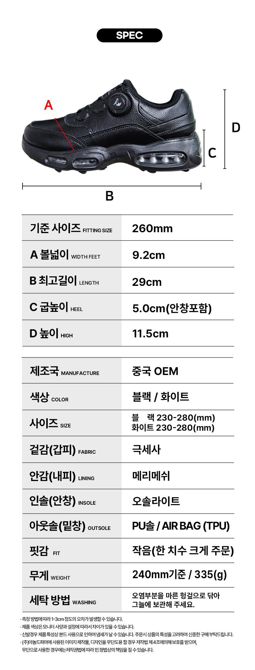 ARNOLD PALMER BRAND SHOP 리버티 UNISEX 미끄럼방지 방수 다이얼 키높이 운동화 워킹화 골프화 | 블랙 스타일컬러 : APLB0001B-Black 15%