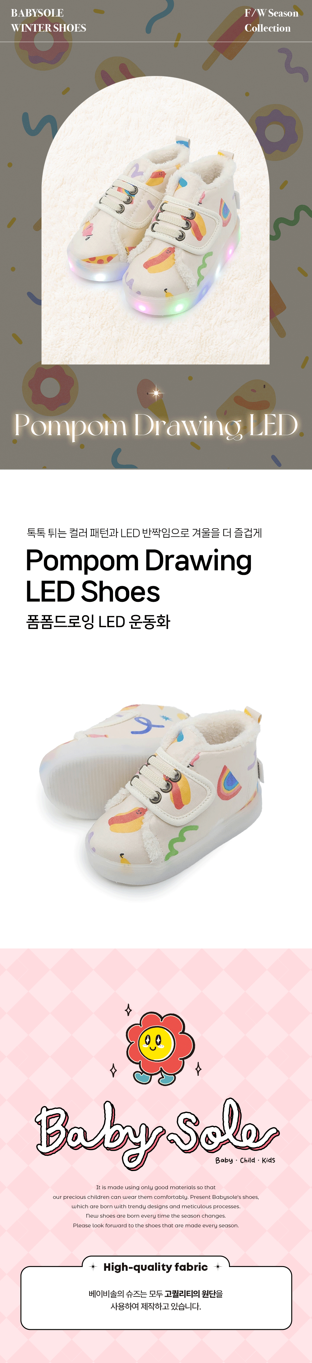 BABYSOLE BRAND SHOP 폼폼드로잉 LED 털운동화 스타일컬러 : LD118-BEIGE 32%