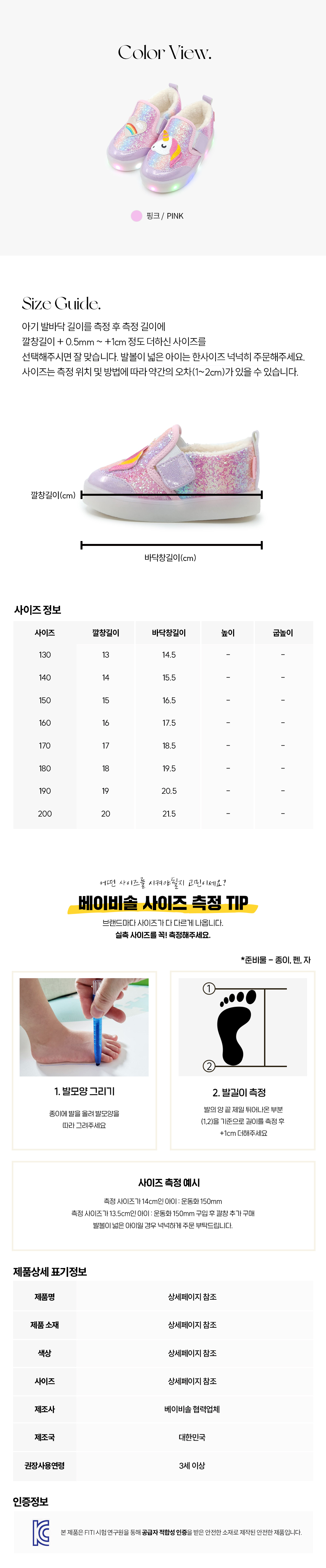 1. LED 신발은 물에 담가 세탁 불가하며 세탁 시 물이 들어가면 고장의 원인이 됩니다.