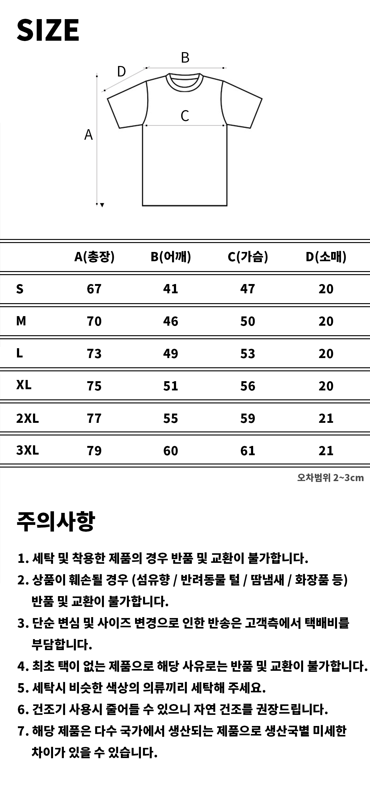 • 치수 S, M, L, XL, 2XL, 3XL