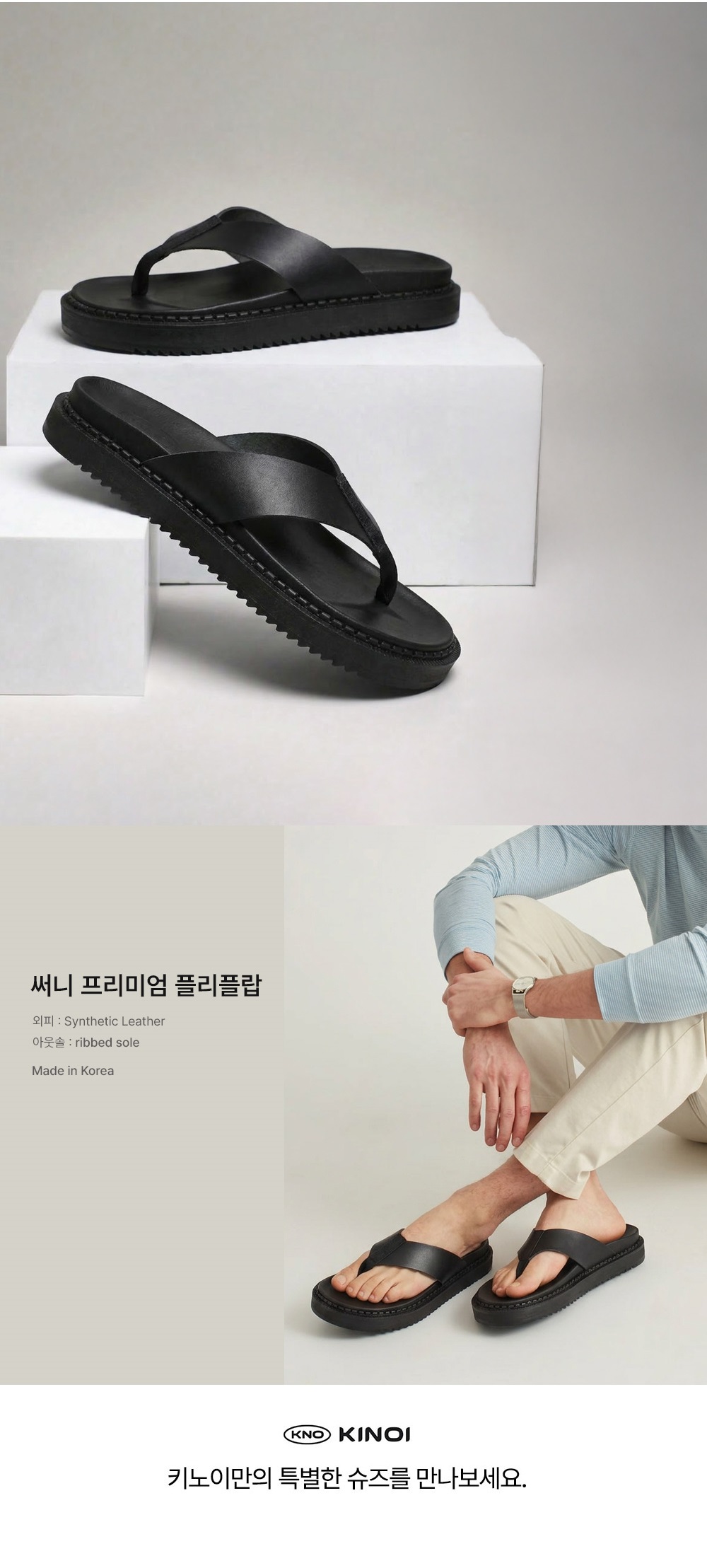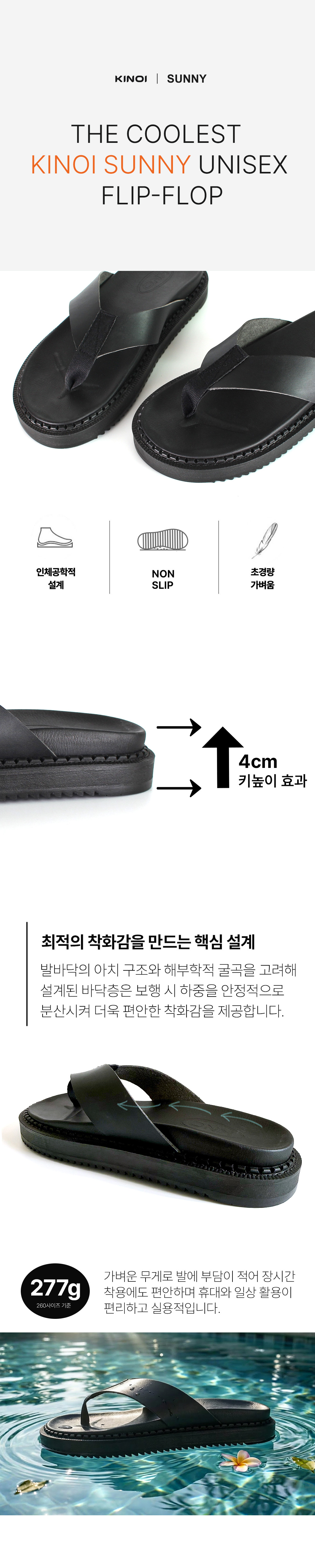 KINOI BRAND SHOP 써니 4cm 키높이 소프트 레더 플립플랍 블랙 쪼리 스타일컬러 : kinoi-00051-Black 48%